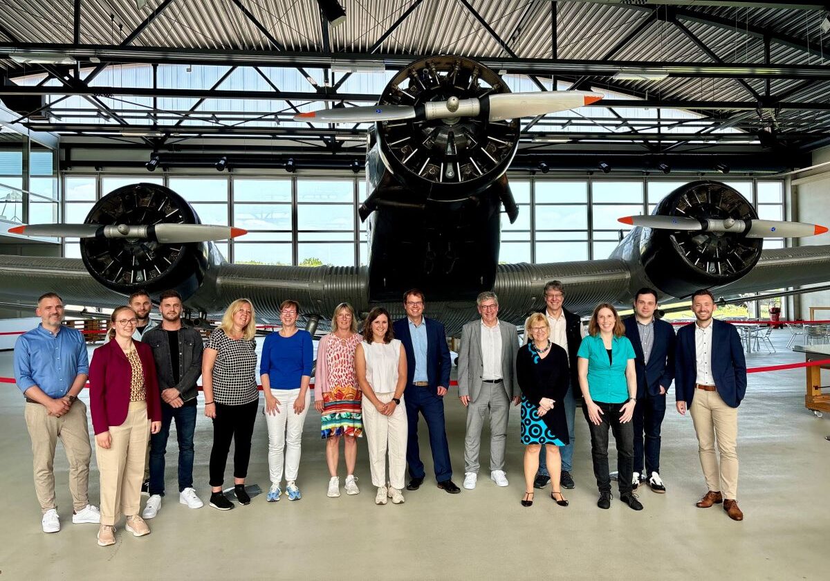 (1) Das Foto zeigt den gestrigen Delegationsbesuch am Flughafen Mönchengladbach.