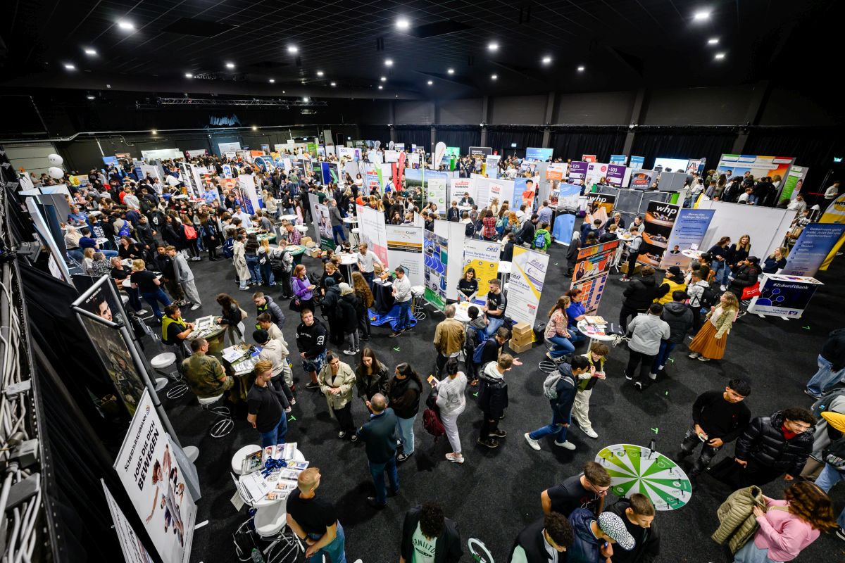 (1): Rund 4.000 Schülerinnen und Schüler sowie 130 ausstellende Firmen waren im September bei der Berufs- und Studienorientierungsmesse „Beruf Konkret“ in der RED BOX im Nordpark dabei.