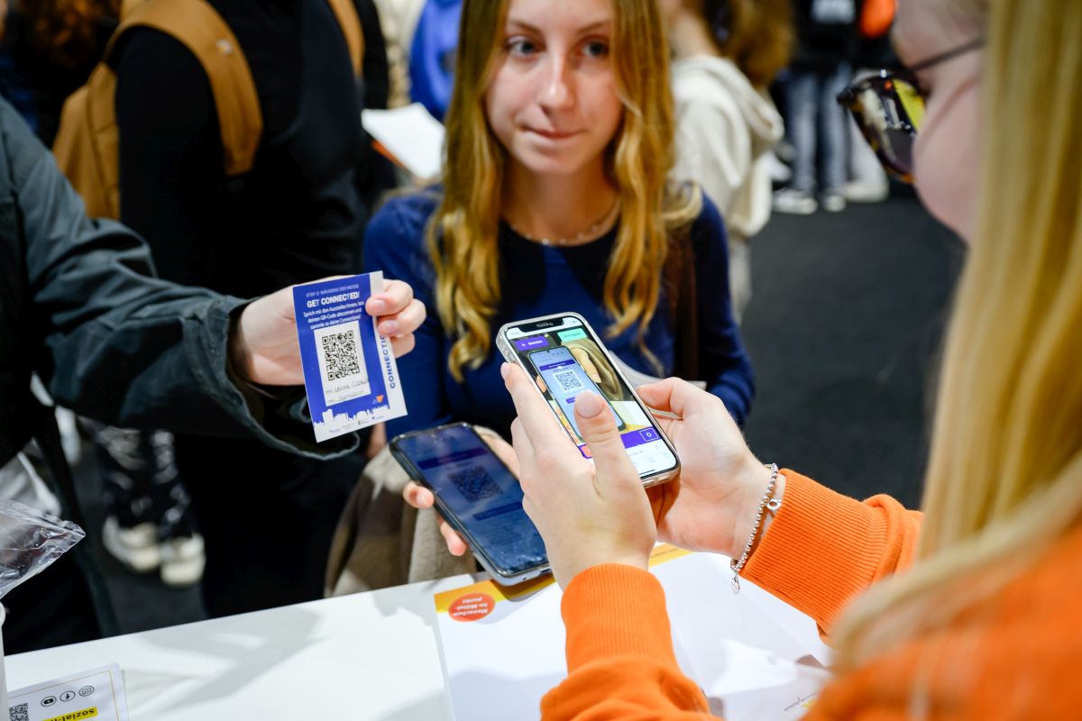 (2) Die Web-App „vlipsnap“ wurde in dieser Form erstmals bei „Beruf Konkret“ genutzt: Sie ermöglicht es Schülerinnen und Schülern sowie Unternehmen, über eine QR-Code-Connection berufliche Kontakte nachhaltiger zu knüpfen und über eine Chat-Funktion auch nach dem Event in Kontakt zu bleiben.