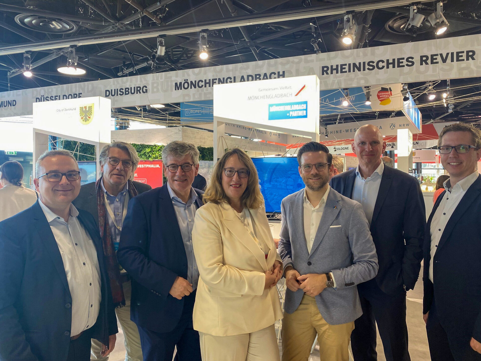 Auf der MIPIM präsentieren WFMG und EWMG ihre Prestigeprojekte und die der Stadt Mönchengladbach, darunter die Maria-Hilf-Terrassen, den Wissens- und Innovationscampus und den Premium-Businesspark Nordpark. Zudem stehen Potenzialflächen im Fokus – etwa im Bereich der ehemaligen Joint Headquarters (JHQ) und am Flughafen Mönchengladbach. Weitere Gewerbeflächen wurden unlängst von der Zukunftsagentur Rheinisches Revier (ZRR) als besonders strukturwandelrelevant identifiziert. „Wir sprechen von insgesamt sieben Arealen, die wir ZRR und NRW Global Business bei einer Besichtigung im Dezember mit der WFMG präsentieren durften“, sagt Oberbürgermeister Felix Heinrichs. „Die Erkenntnis, dass diese Areale besonders strukturwandelrelevant sind, wird idealerweise Entwicklungsprozesse beschleunigen und somit reichlich Gelegenheiten für Investoren und Projektentwickler eröffnen, in Mönchengladbach tätig zu werden.“ Heinrichs selbst ist erstmalig bei der MIPIM vor Ort, ebenso wie die neue Planungsdezernentin, Technische Beigeordnete sowie EWMG-Co-Geschäftsführerin Claudia Schwan-Schmitz.